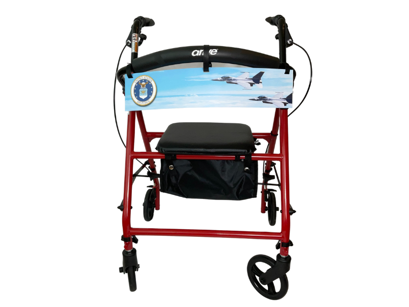 A great Veteran gift! Show everyone how they have served with this great Air Force gift for your service man or veteran. Honor your USAF veteran with a personalized walker accessory or rollator accessory by adding their name or handle for no extra charge.